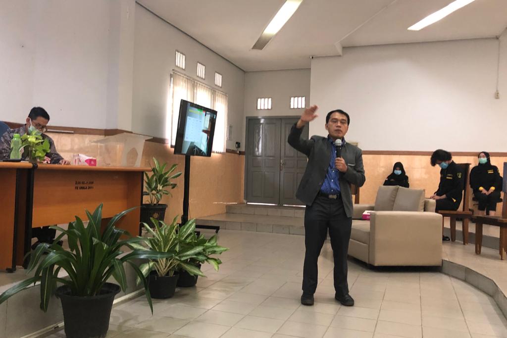 Dr. Sudrajat, M.Acc. memberikan pemaparan Kurikulum 2020 kepada Mahasiswa Prodi. D3 Akuntansi dalam kegiatan Pengenalan Kehidupan Kampus pada Mahasiswa Baru, Jumat, 25 September 2020, di Gd. E Ruang 102 FEB Unila.